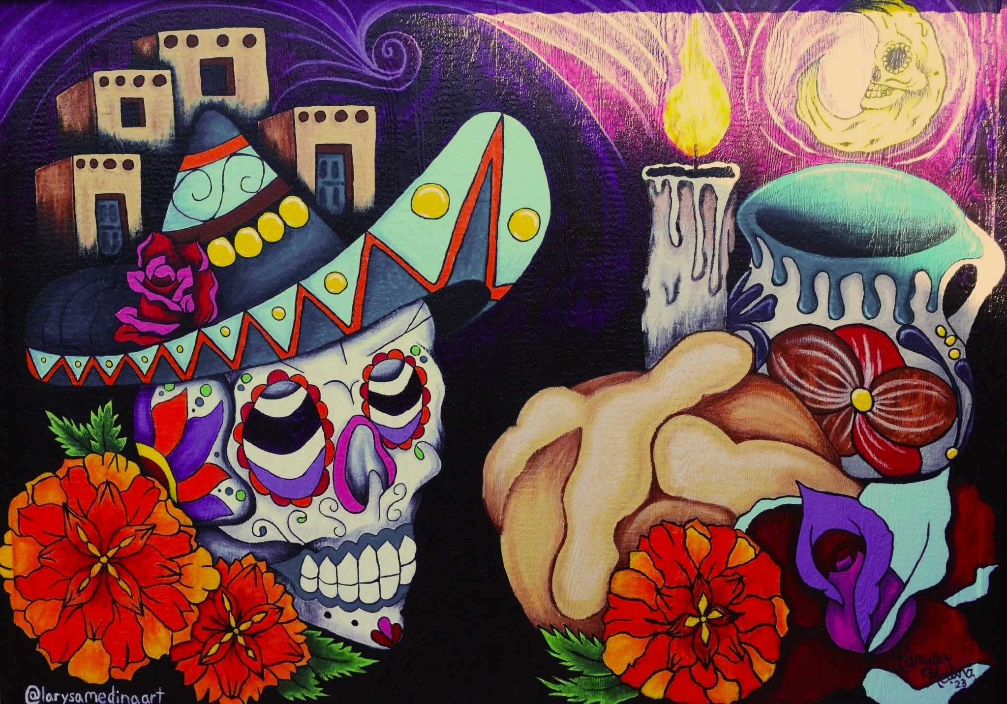 The CHAC Día de los Muertos Mural was created in honor of CHAC’s new and final location. CHAC is Colorado’s oldest Latinx nonprofit gallery and art organization founded in 1978. I created this mural using acrylic paint and it is 8 feet wide by 6 feet high. I based the theme off of their iconic Day of the Dead celebrations. This mural is located at 834 Santa Fe Dr, Denver, CO 80204.
